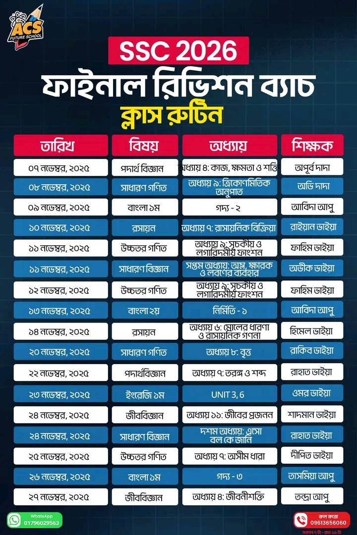 SSC 2026 Final Revision Batch ক্লাস রুটিন | 𝗦𝗦𝗖’𝟮𝟲 ব্যাচের শিক্ষার্থীরা, 𝗙𝗶𝗻𝗮𝗹 𝗥𝗲𝘃𝗶𝘀𝗶𝗼𝗻 𝗕𝗮𝘁𝗰𝗵 এর ক্লাস শুরু হয়ে যাচ্ছে 𝟮𝟱 সেপ্টেম্বর থেকে, তাই এক নজরে দেখে নাও 𝗙𝗥𝗕 এর সম্পূর্ণ